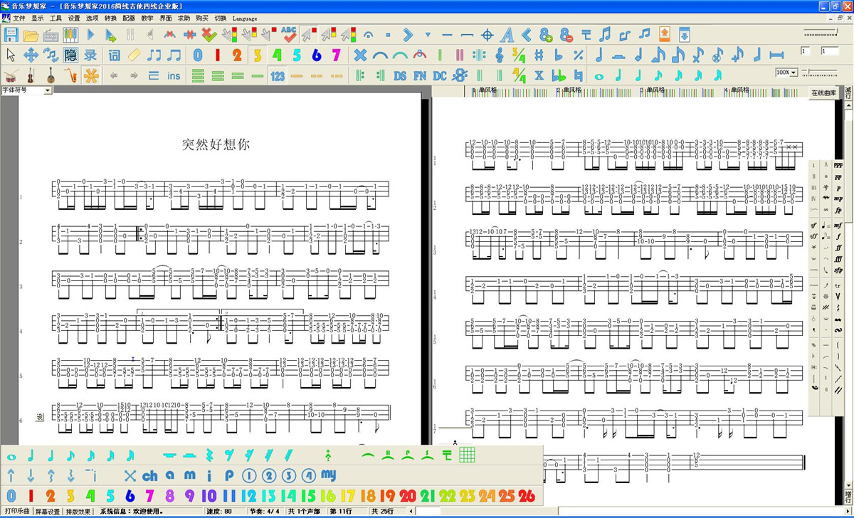 1、琵琶譜支持,和弦既可以顯示在上方,也可以顯示在下方,更可以混合顯示,而且,所有的音符均可以自由移動。