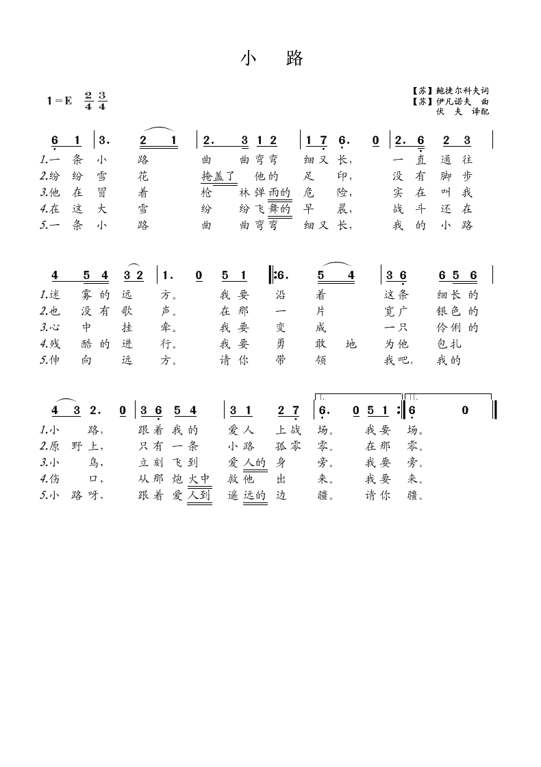 《小路》誕生于前蘇聯衛國戰爭的烽火中,是蘇聯衛國戰爭時期的一首著名軍事歌曲。這是首歌曲描寫了年輕的姑娘追隨心上人,一起上戰場抗擊敵人的場景。