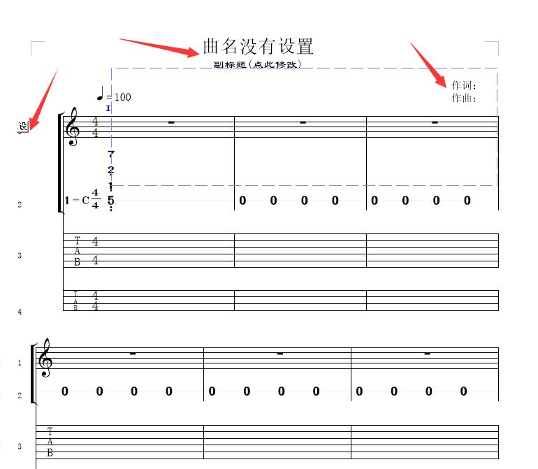將鼠標放在行前 設 的后面,光標會變為左右箭頭,此時,按下鼠標左鍵左右可以拖動行的縮進,對于拖動好的行,調節位置同樣是在行前 設 位置,這一點需要特別注意。拖動完成后,可以直接拖動曲名和作詞作曲位置到您需要的地方。