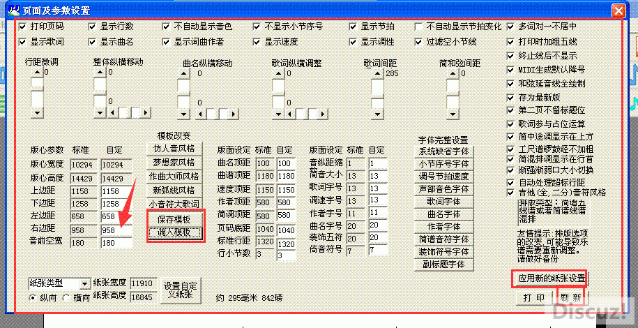 | 頁(yè)面設(shè)置 我們?cè)O(shè)定好的數(shù)據(jù)如何保存 所有的數(shù)據(jù)我們?cè)O(shè)置好了 可以點(diǎn)擊下圖中的保存模板 下次進(jìn)入的時(shí)候可以直接調(diào)入模板 所有的數(shù)據(jù)都會(huì)還原 數(shù)據(jù)設(shè)置好了 我們要點(diǎn)擊 應(yīng)用新的紙張 刷新