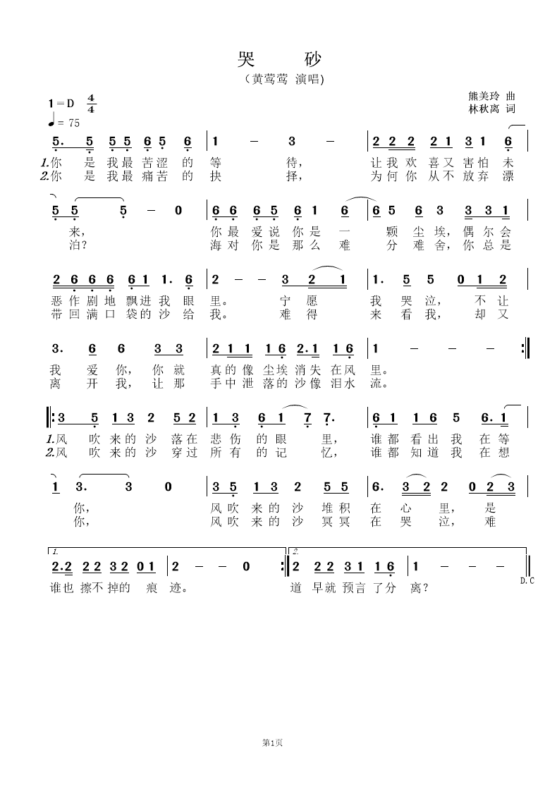 《哭砂》是黃鶯鶯演唱的歌曲,由林秋離作詞、熊美玲作曲,收錄于黃鶯鶯1990年個人專輯《讓愛自由》中,并被眾多歌手重新翻唱了20余次。