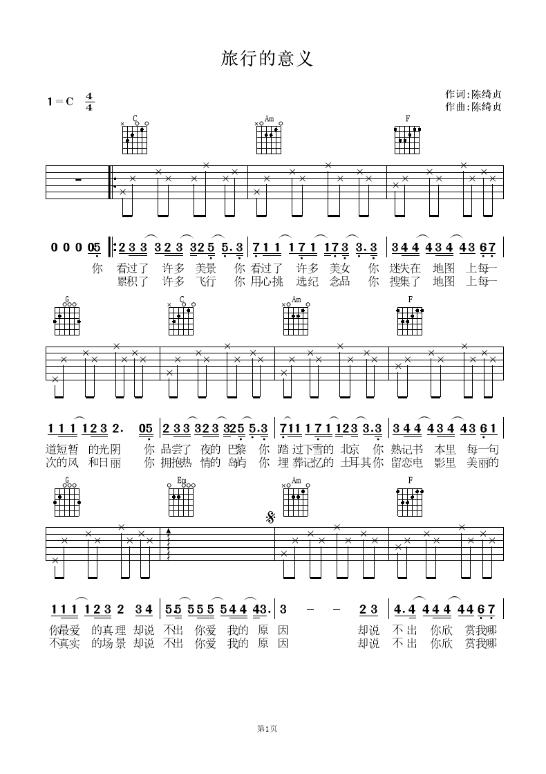 歌曲歌詞你看過了許多美景 你看過了許多美女 你迷失在地圖上每一道短暫的光陰 你品嘗了夜的巴黎 你踏過下雪的北京 你熟記書本里每一句你最愛的真理 卻說不出你愛我的原因 卻說不出你欣賞我哪一種表情 卻說不出在什么場合我曾讓你動心 說不出離開的原因 你累積了許多飛行 你用心挑選紀念品 你收集了地圖上每一次的風和日麗 你擁抱熱情的島嶼 你埋葬記憶的土耳其 你留戀電影里美麗的不真實的場景 卻說不出你愛我的原因 卻說不出你欣賞我哪一種表情 你卻說不出在什么場合我曾讓你分心 說不出旅行的意義 你勉強說出你愛我的原因 卻說不出你欣賞我哪一種表情 卻說不出在什么場合我曾讓你動心 說不出旅行的意義 勉強說出你為我寄出的每一封信 都是你離開的原因 你離開我 就是旅行的意義 ![]()