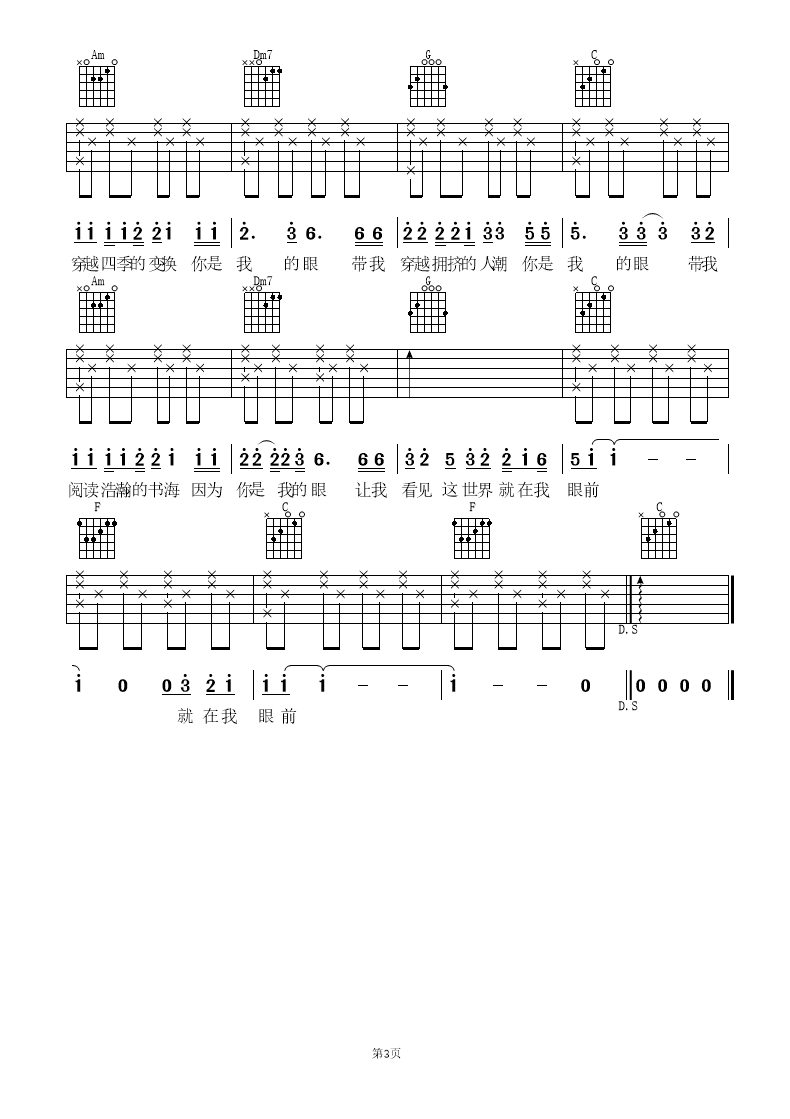 歌曲歌詞 如果我能看得見 就能輕易的分辨白天黑夜就能準確的在人群中 牽住你的手 如果我能看得見 就能駕車帶你到處遨游 就能驚喜的從背后 給你一個擁抱 如果我能看得見 生命也許完全不同 可能我想要的我喜歡的我愛的 都不一樣 眼前的黑不是黑 你說的白是什么白 你說的天空藍 是我記憶中那團白云背后的藍天 我望向你的臉 等你 等你 卻只能看見一片虛無 今生執著等你 是不是上帝在我眼前遮住了簾 沒有人知道我等的是你 忘了掀開 你是我的眼 帶我領略四季的變換 你是我的眼 帶我穿越擁擠的人潮 你是我的眼 帶我閱讀浩瀚的書海 因為你是我的眼 讓我看見這世界 曾經 就在我眼前 就在我眼前 YE~ 眼前的黑不是黑 你說的白是什么白 人們說的天空藍 是我記憶中那團白云背后的藍天 我望向你的臉 卻只能看見一片虛無 是不是上帝在我眼前遮住了簾 忘了掀開 你是我的眼 帶我領略四季的變換 你是我的眼 帶我穿越擁擠的人潮 你是我的眼 帶我閱讀浩瀚的書海 因為你是我的眼 讓我看見這世界 就在我眼前 WOO HO~ WOO HO~ 你是我的眼 帶我領略四季的變換 你是我的眼 帶我穿越擁擠的人潮 你是我的眼 帶我閱讀浩瀚的書海 因為你是我的眼 讓我看見這世界 就在我眼前 就在我眼前 WOO WU~