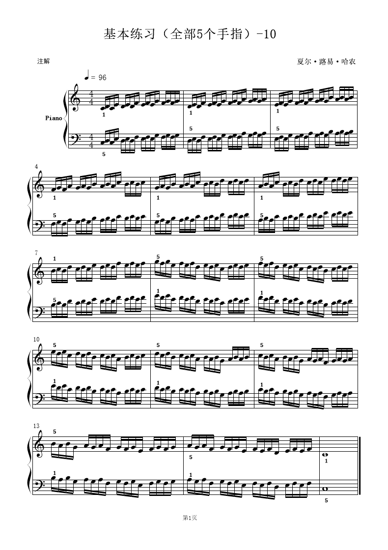 | 哈農(nóng)基本練習(xí)(全部5個(gè)手指)-10(五線譜) |
