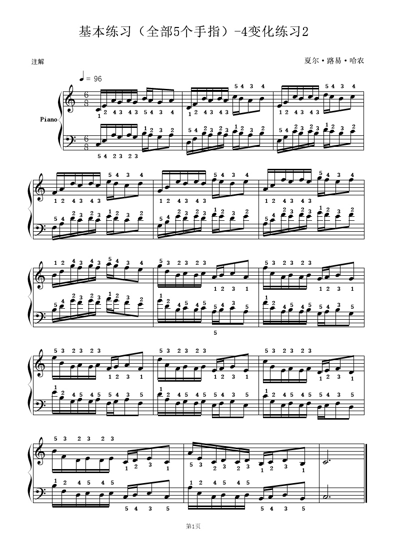 | 哈農基本練習(5個手指)4變化練習2(五線譜) |