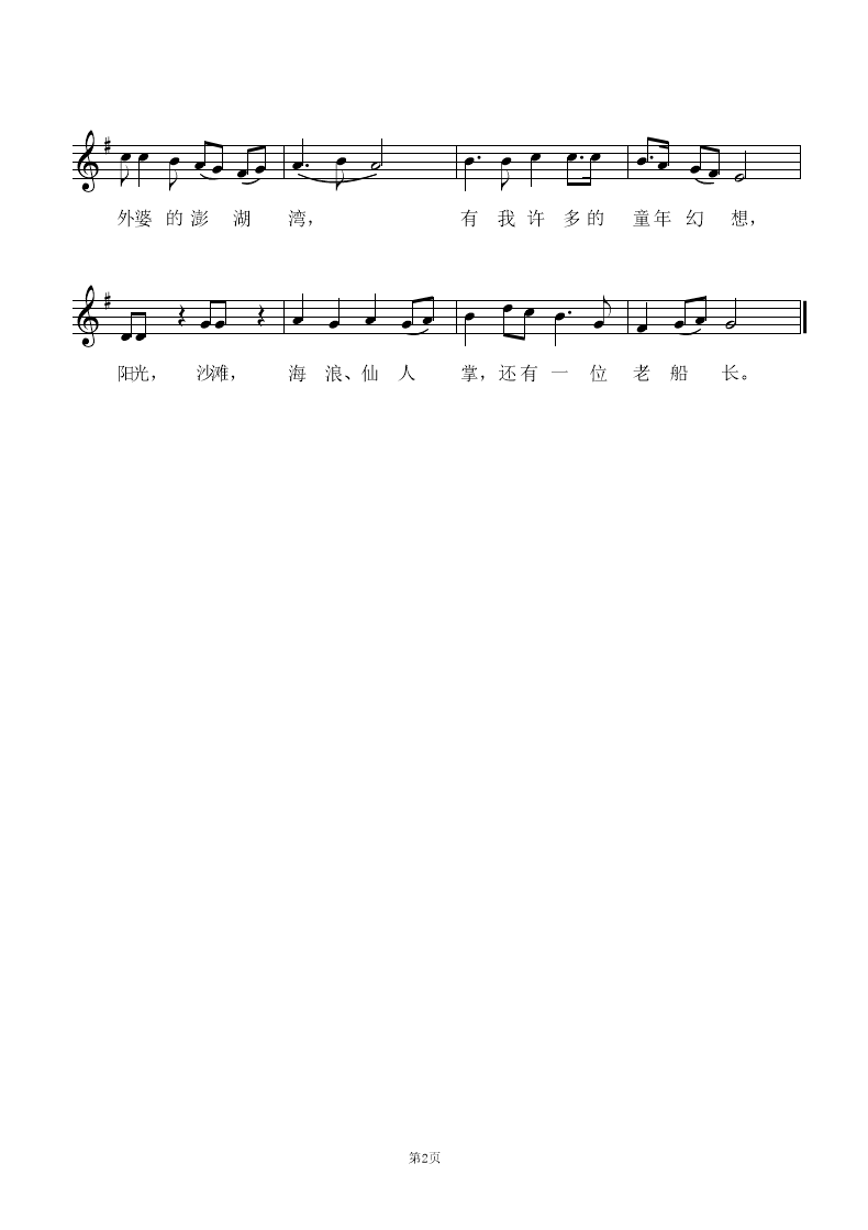 | 人音五年級(jí)上冊(cè)外婆的澎湖灣五線譜 |